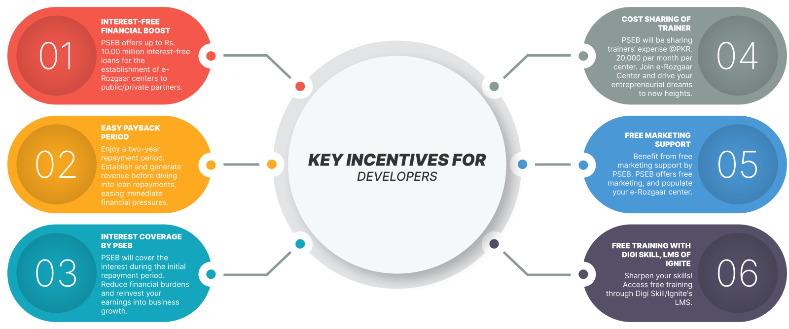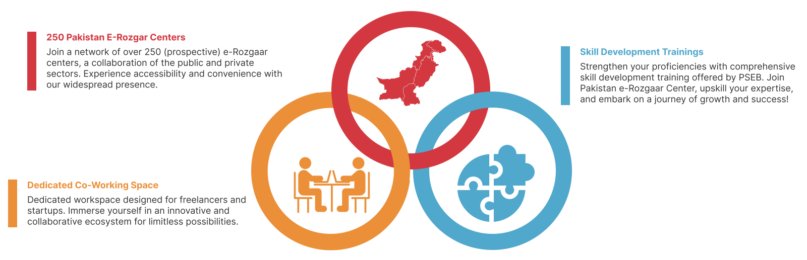 The objective of the Project is to establish 250 e-Rozgaar centers across Pakistan to facilitate freelancers and startups.
